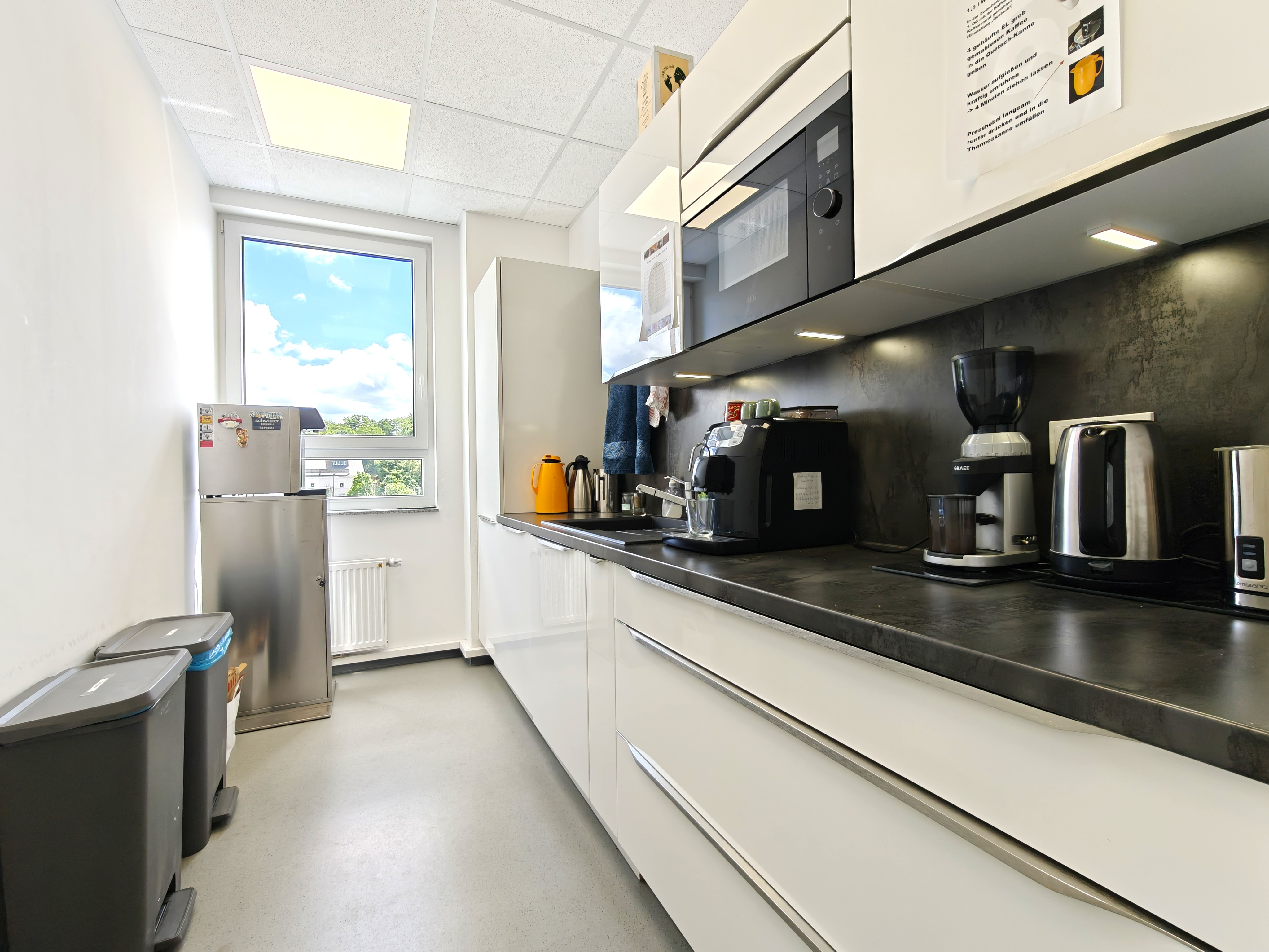 Am Ende der Büroetage befindet sich ein kleiner Besprechungsraum. In seltenen Fällen könnte bei Bedarf auch ein großer Besprechungsraum im 1.OG angemietet werden (nach Absprache).