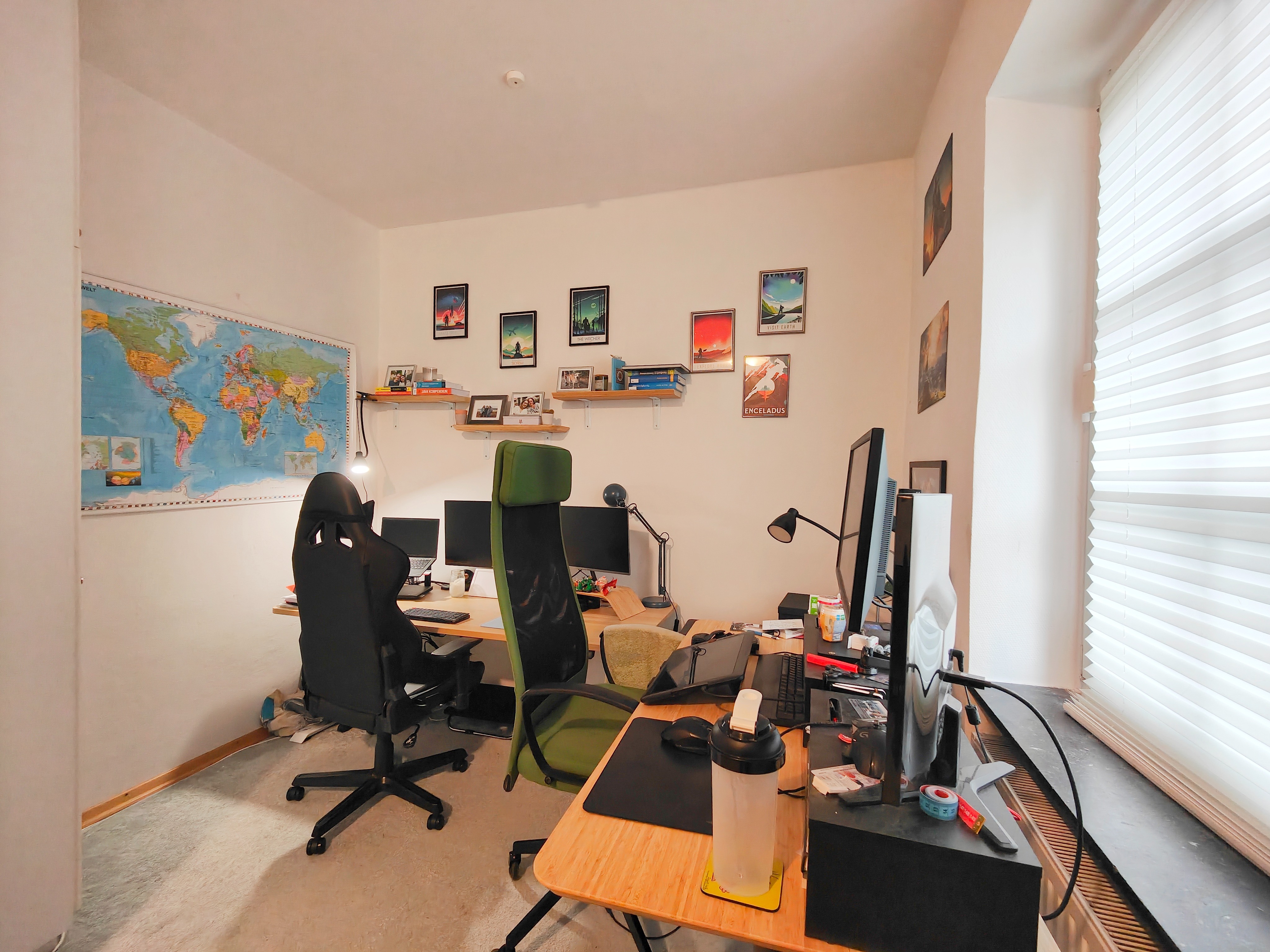Es gibt keinen PKW-Stellplatz, allerdings gibt es direkt vor dem Haus und in der gesamten Umgebung viele Parkplätze.