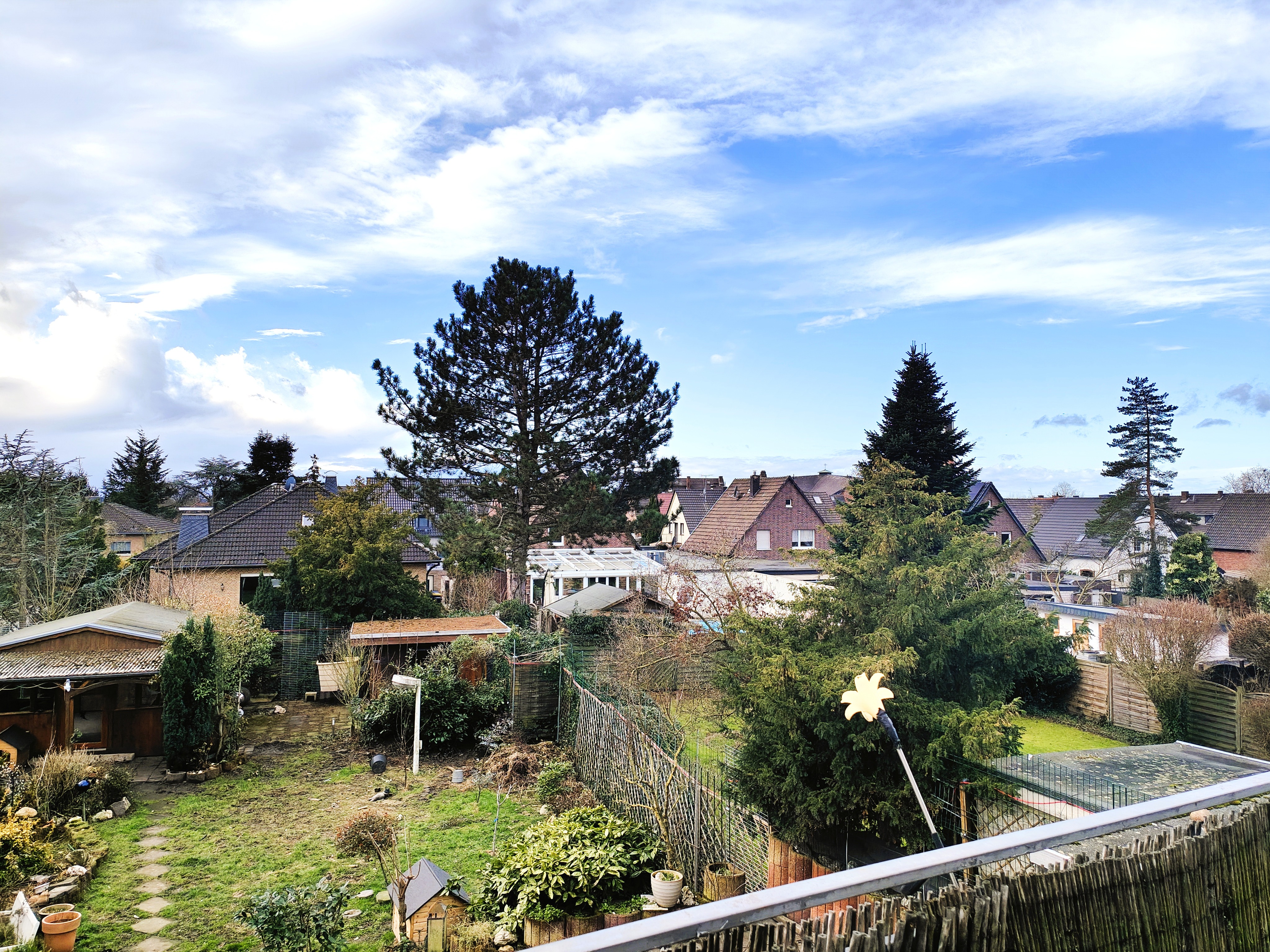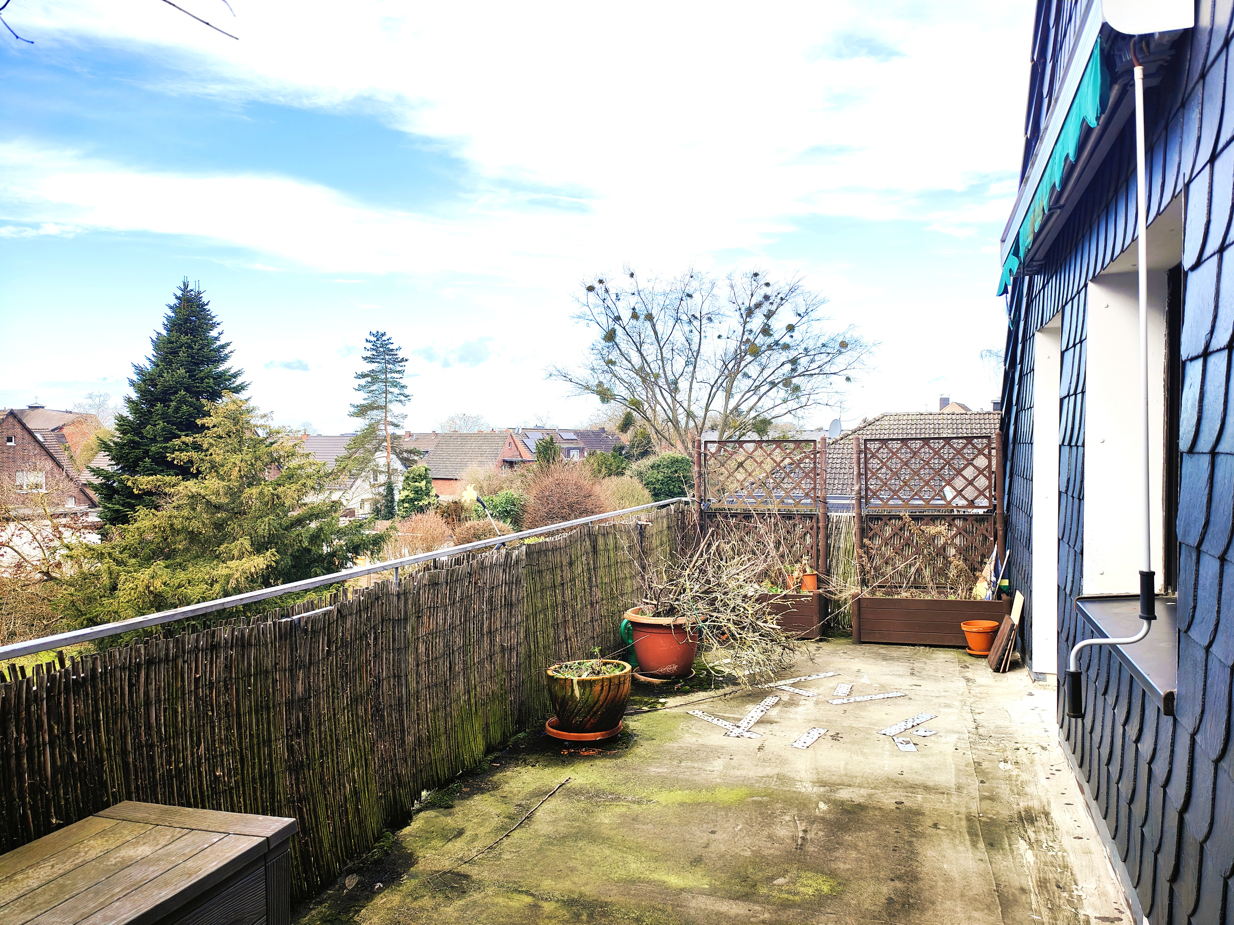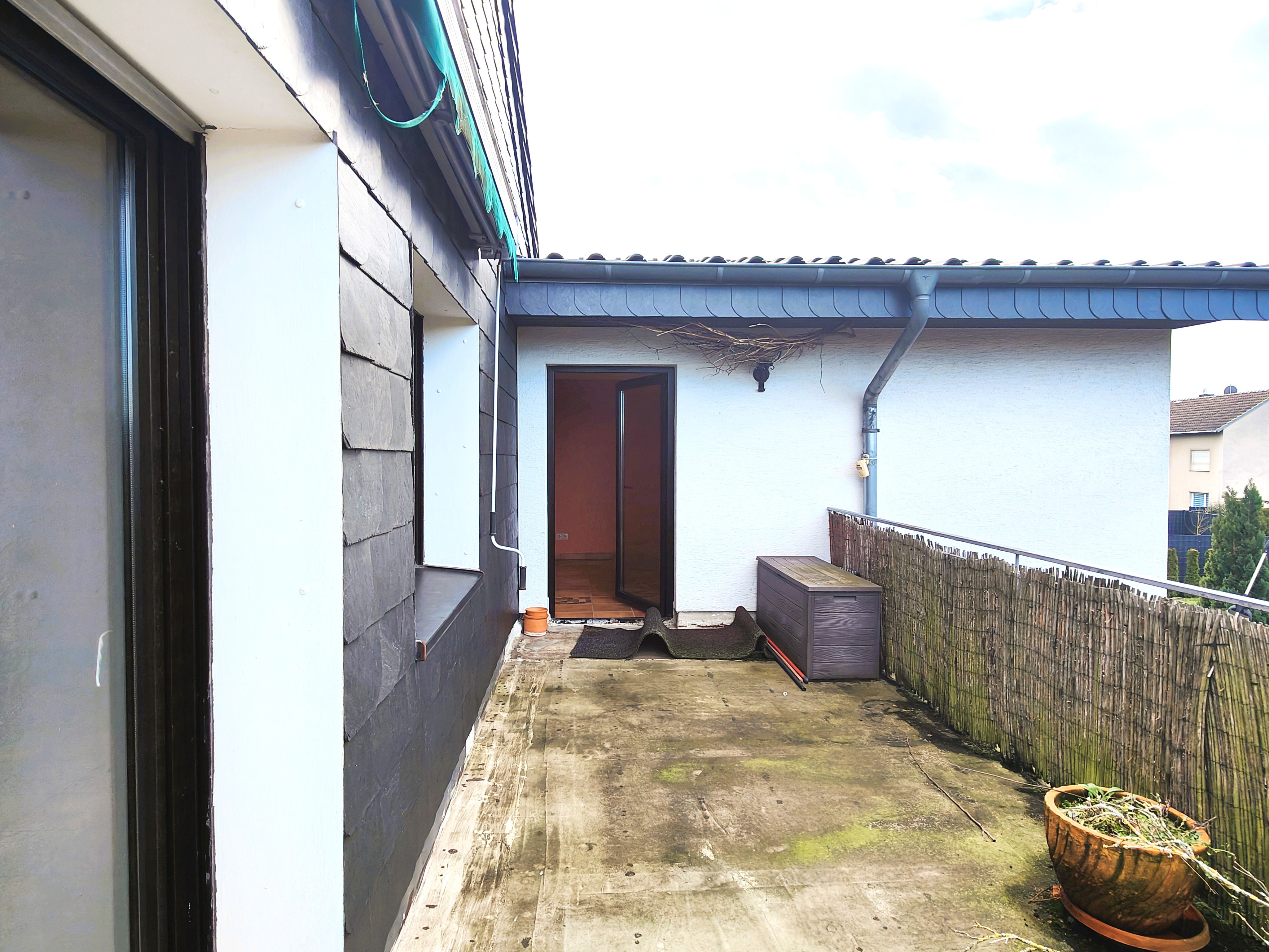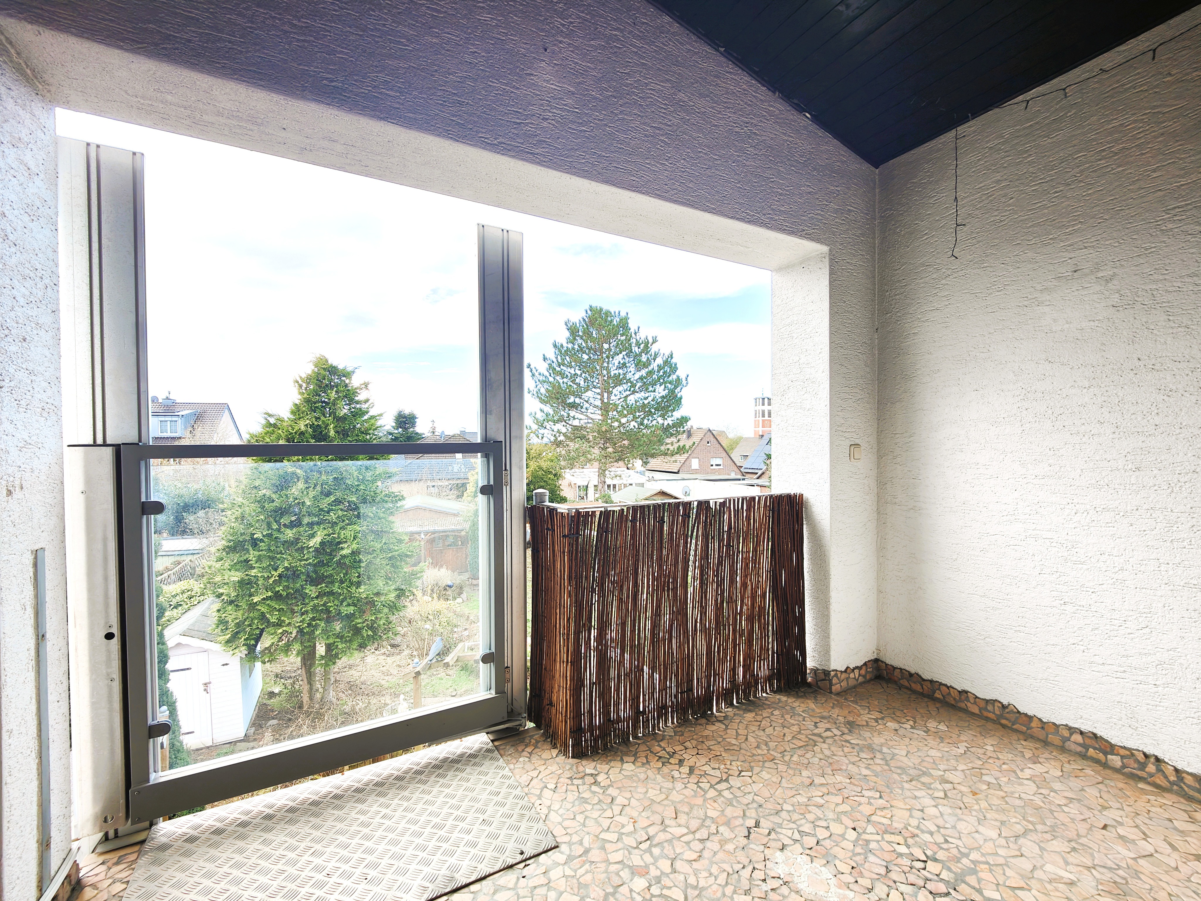 Bei der angebotenen Immobilie handelt es sich um eine gemütliche Drei-Zimmer-Dachgeschosswohnung (1.OG) mit einer Wohnfläche von 78,31 m². Das ursprünglich als Einfamilienhaus errichtete Gebäude stammt aus dem Jahr 1959 und wurde im Jahr 1991 nach Aufstockung als Zweifamilienhaus umgebaut. Modernisiert wurde das Objekt in den Jahren 2004 und 2007. Insgesamt befindet sich das Gebäude in einem gepflegten Zustand. Die Wohnung verfügt über zwei Balkone, eine Terrasse und einen Garten. Zudem stehen zwei Parkplätze zur Verfügung (Carport und Parkplatz im Freien). Auch ein Abstellraum mit angrenzendem Schuppen, ein kleines Gartenhäuschen sowie der über der Wohnung befindliche und nicht ausgebaute Spitzboden gehören zu dieser Wohneinheit.