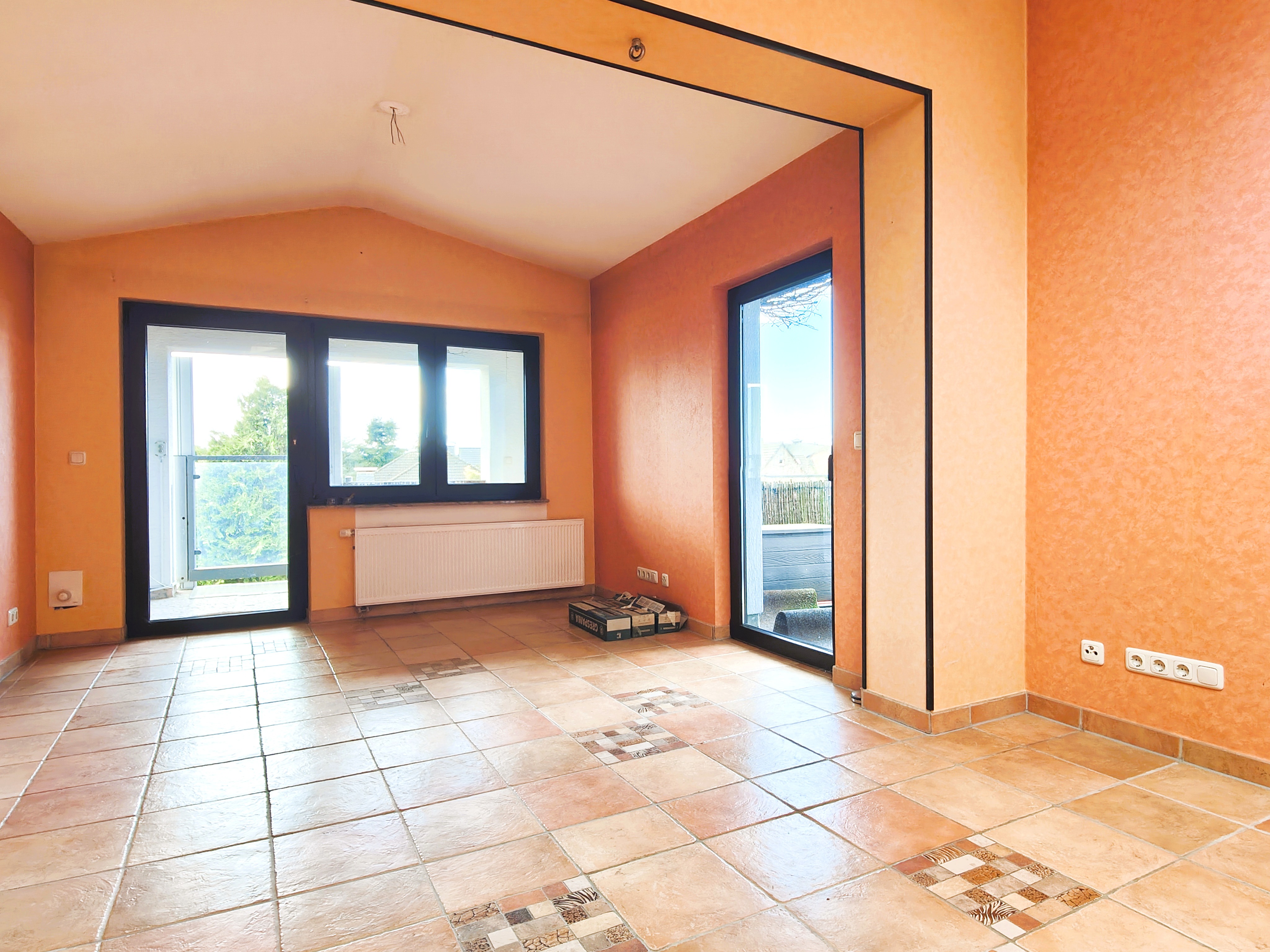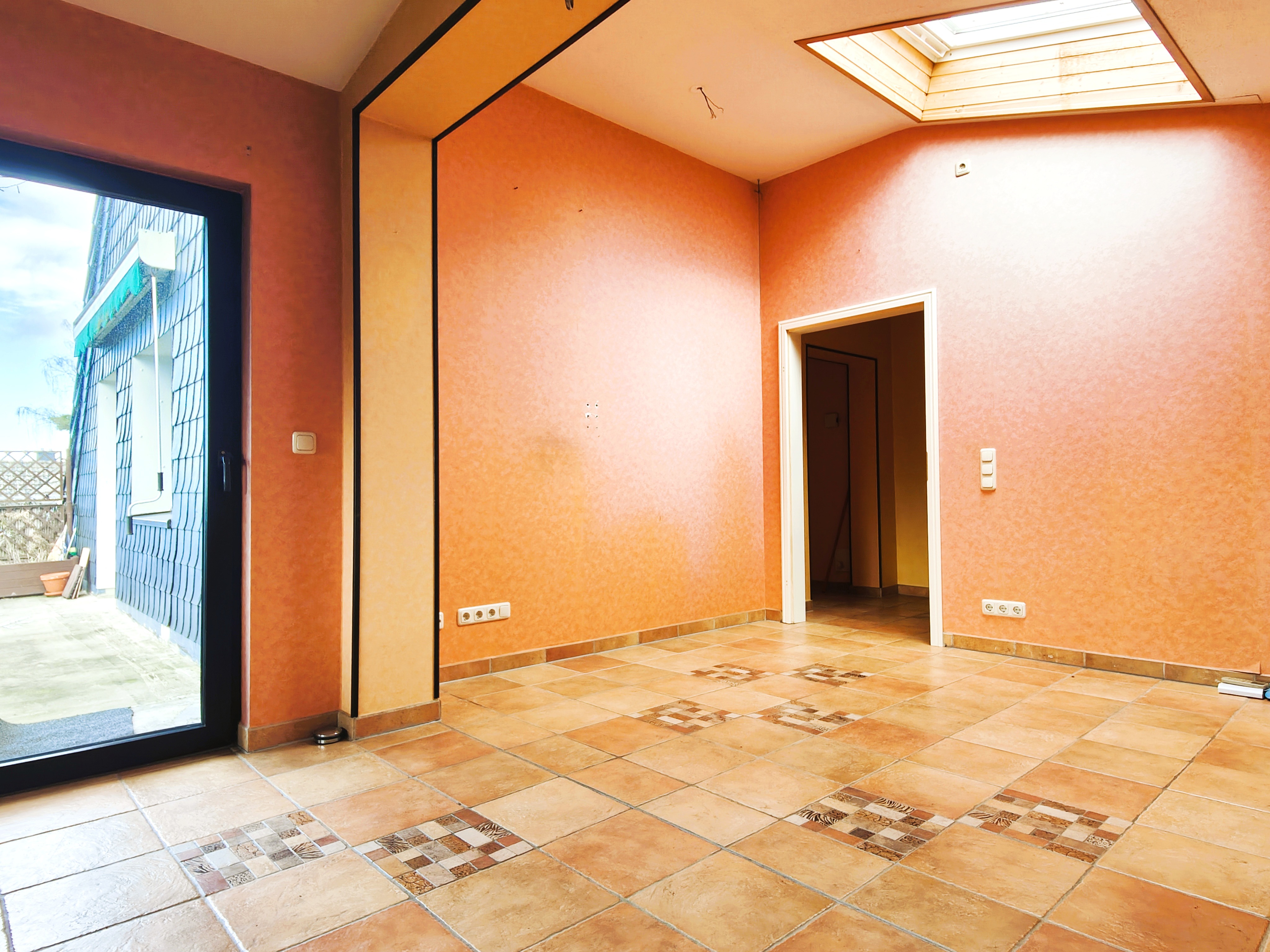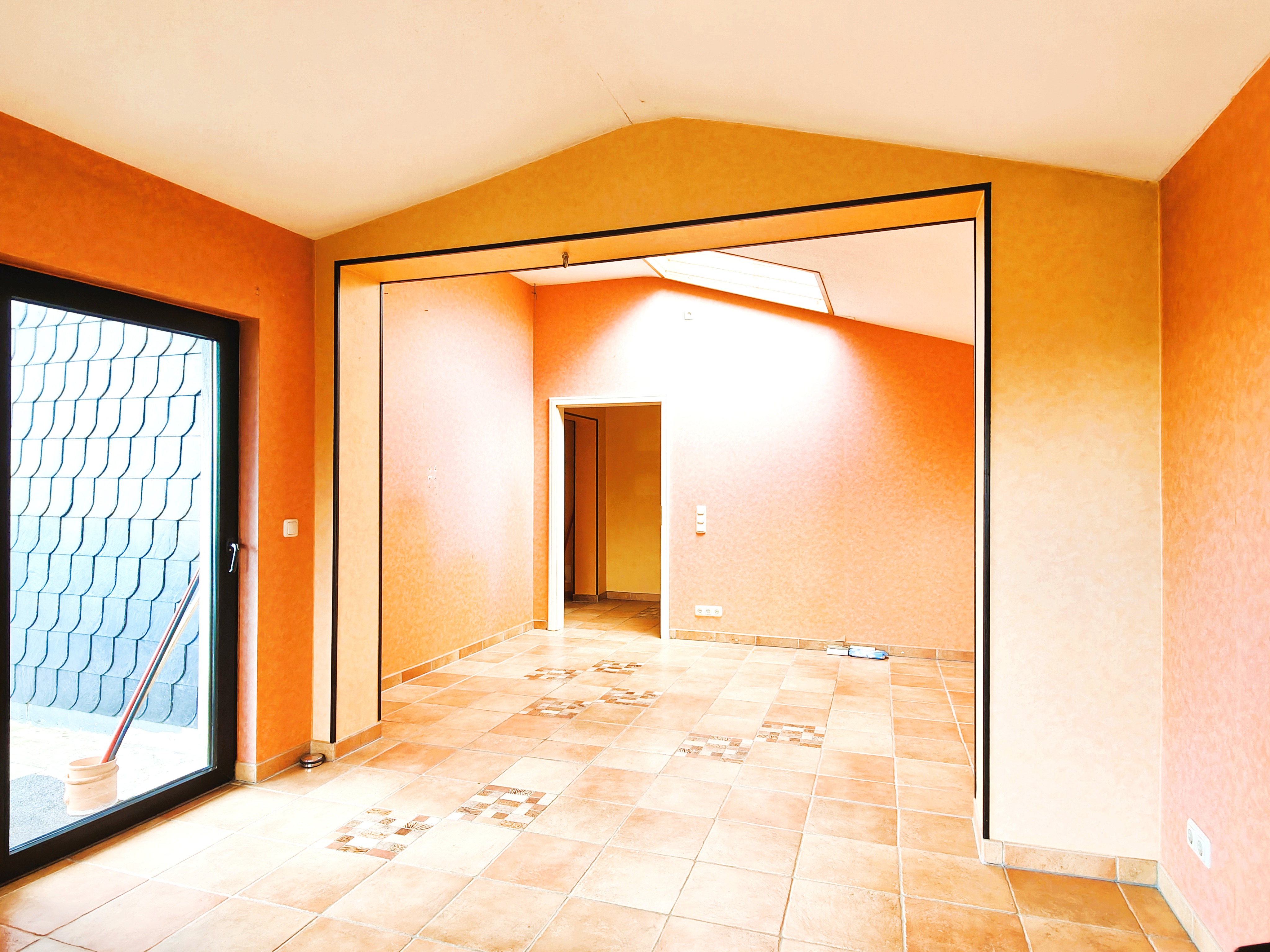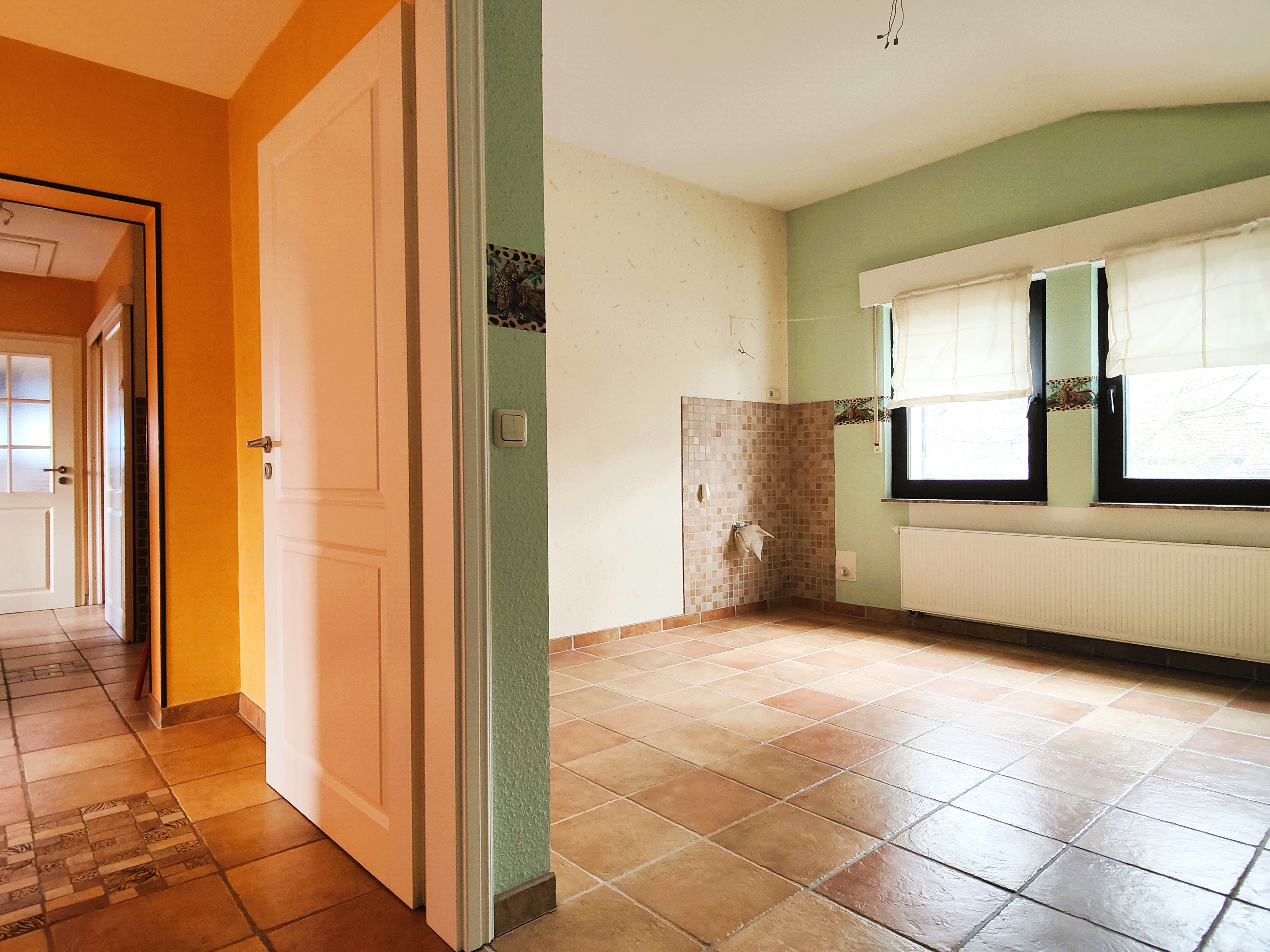 Die Bodenbeläge im gesamten Bereich sind mit Fliesen ausgelegt.