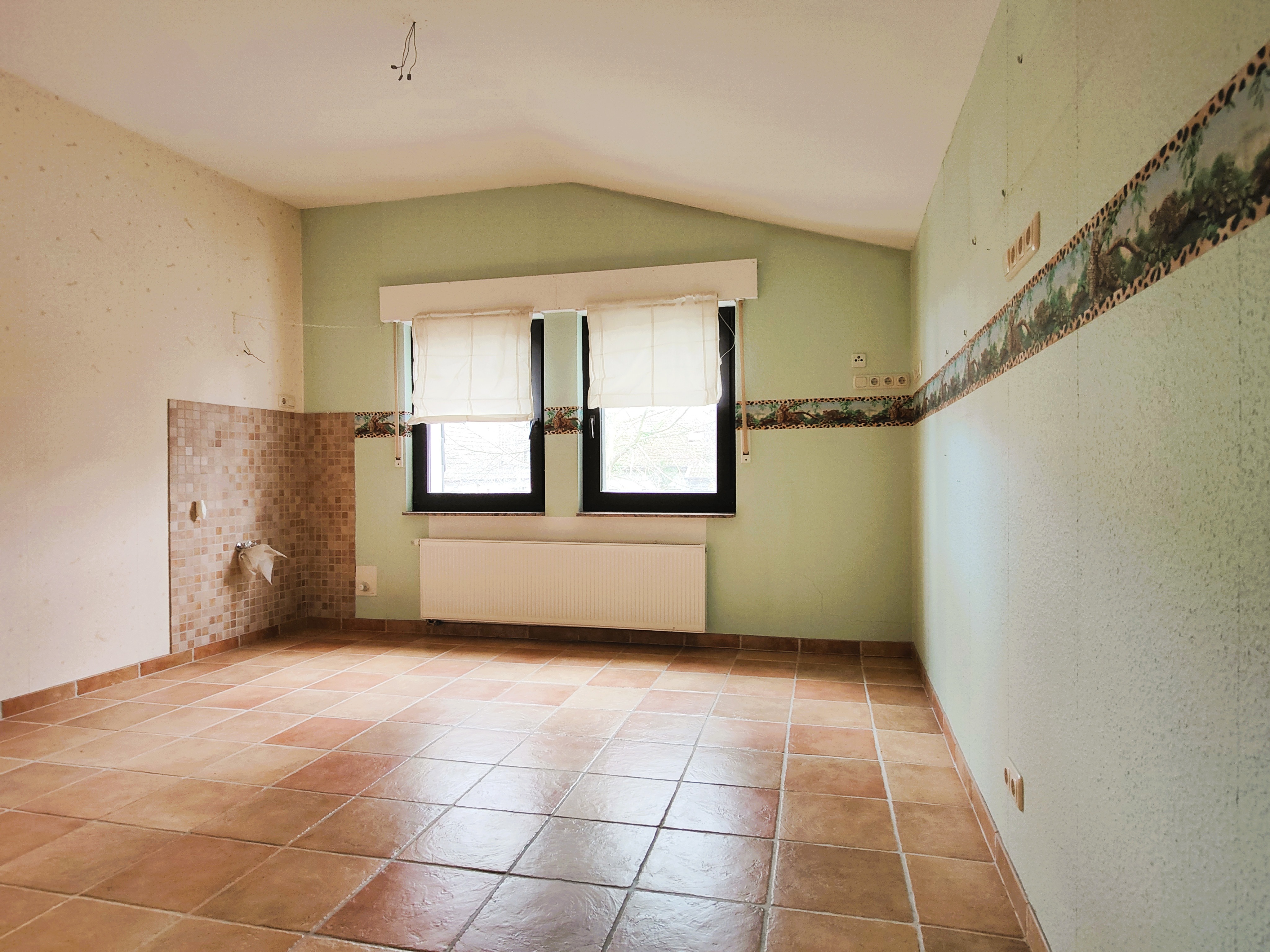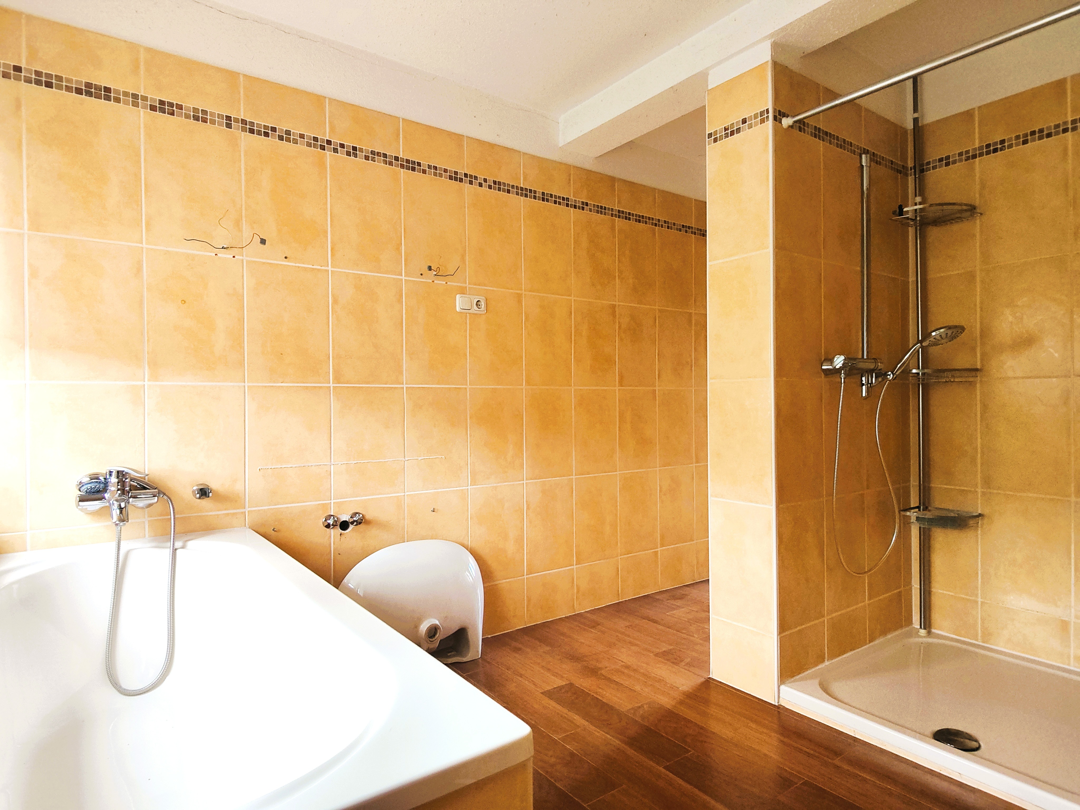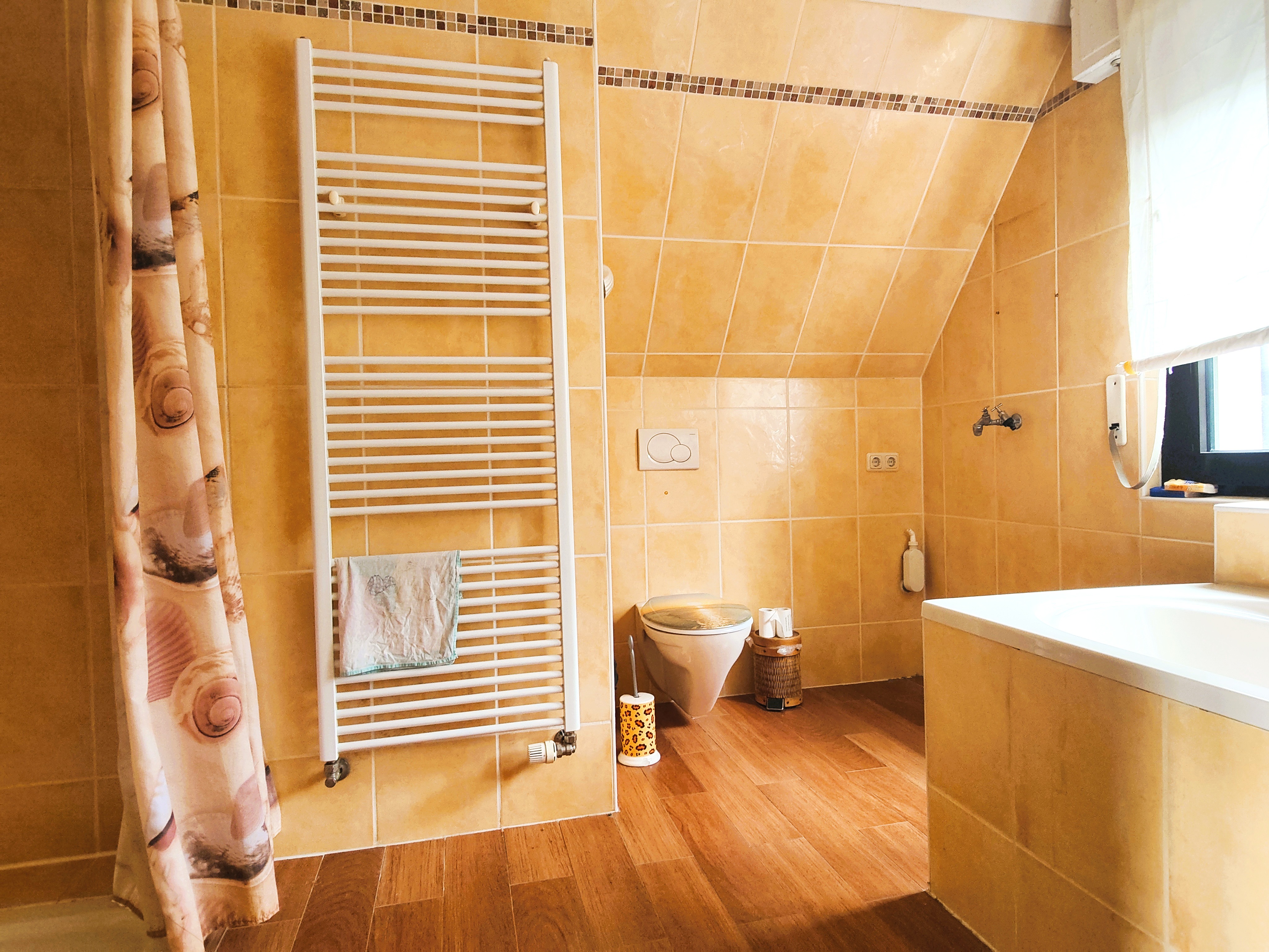 - Ausstattung des Bades Fenster, Dusche, Badewanne